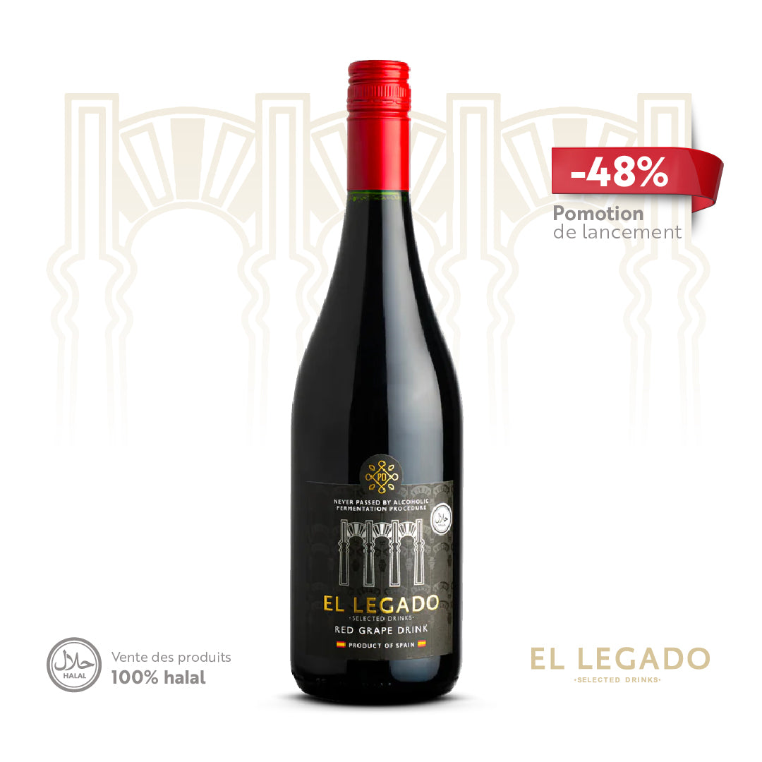EL LEGADO vous offre une expérience authentique et naturelle. Cette boisson au raisin rouge, riche et équilibrée, est élaborée à partir de moût de raisin Muscat d'Alexandrie (58%), sans aucun sucre ajouté. Elle révèle la générosité et les saveurs délicates du fruit, parfaites pour une dégustation pure.